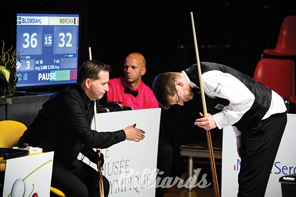 작년도 준우승자 마틴 혼이 13:4로 블롬달을 제치고 점수 차를 벌여나갔다. 하지만 그대로 당할 블롬달이 아니었다. 세계 랭킹 1위답게 위기를 극복해 나갔다. 10점의 장타를 날린 블롬달은 단숨에 역전에 성공했다.