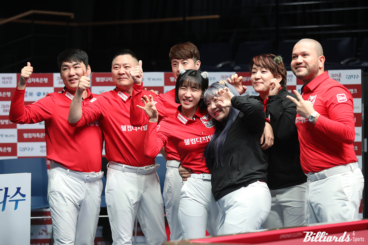 웰컴저축은행 웰뱅 피닉스가 에스와이 바자르를 꺾고 프로당구 PBA 팀리그 4라운드에서 1승을 추가했다.