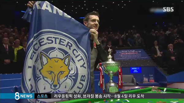 0.02%의 확률을 뚫고 프리미어리그에서 우승하는 기적을 일으킨 레스터가 온통 축제의 기쁨에 싸여 있을 바로 그때, 축구 다음으로 영국에서 인기 있는 스포츠인 스누커의 제일 큰 대회인 스누커 세계 선수권대회에서 레스터 출신의 마크 셀비가 우승을 차지한 것이다.