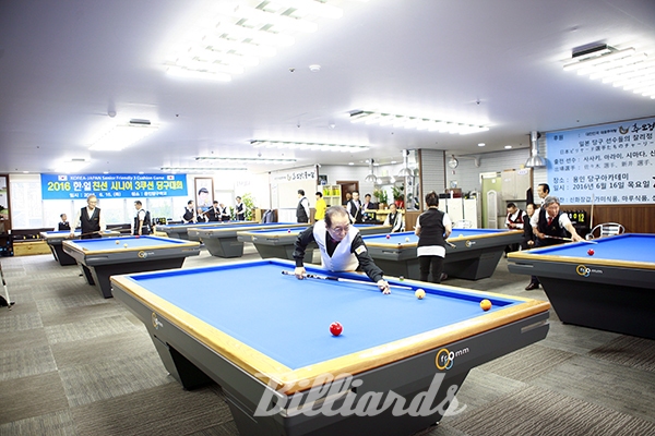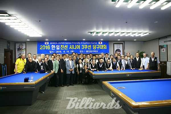 지난 6월 16일 경기도 용인시의 용인당구아카데미에서는 매년 1회씩 열리는 한일 시니어 3쿠션 친선당구대회가 개최되었다.