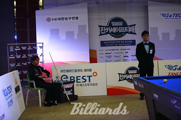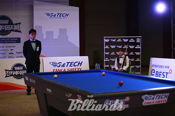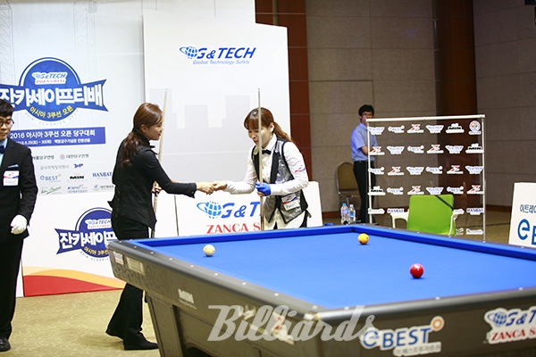 여자 결승전 시작 전 대기 중인 이신영 대회를 앞두고 마인트 컨트롤 중인 박지현 게임에 앞서 인사는 기본! 박지현과 이신영의 결승전 뱅킹 초구의 이신영 이번 공도 놓치고 싶지 않아요, 이신영 박지현, 당구는 계산이 생명이지 박지현, 샷은 날렸고~ 박지현, 어멋 안맞았네~ 민망해라~ 이신영, 초크 칠은 신중하게. 이신영, 준비는 끝났다. 이신영, 우승은 나의 것. 이신영, 결정적 한 샷. 박지현, 나도 질 수 없지.