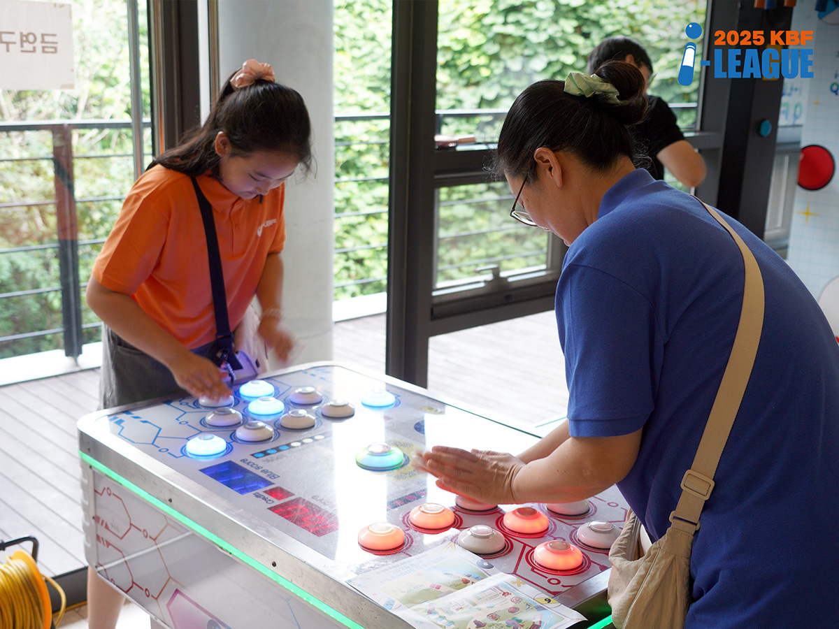 사진은 도파민존에 마련된 스피드터치 게임 중인 엄마와 딸 참가자.