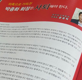방 씨와 부회장 3명이 합세하고, 심지어 대의원이 박 회장에게 폭행까지 가해 전치 3주의 치료를 받게 하면서까지 문제를 만들고자 했던 ‘박종화 의혹’은 근거도 없이 무차별 배포된 거짓임을 확인할 수 있었다.