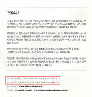 전국당구연합회의 유급 사무직원인 방 씨는 협회지인 <월간 스포츠당구>에 대해 “연합회가 어려울 때 임영렬 전 회장과 본인이 연합회에서 하던 사업이다. 그러므로 협회지가 아닌 본인 개인의 잡지다”라며 소유권을 주장하면서 잡지를 발행하고 있고, 발행된 잡지에는 방 씨가 제기한 의혹에 대해 진상조사를 지시한 박 회장의 도덕적 의혹을 제기하며 퇴진을 요구하고 있다.