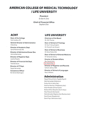 그가 소장한 학위는 박 회장의 학위와 동일했고, 그가 미국에서 공부할 당시에 찍은 사진에 박 회장이 엄연히 등장하기도 했다. 박 회장이 교수직을 역임한 라이프대학교의 공식 서류에 나온 교수진에서도 ‘Dr. Jong Hwa Park’이라는 이름이 확인되었다.