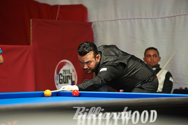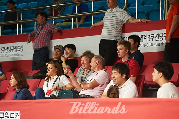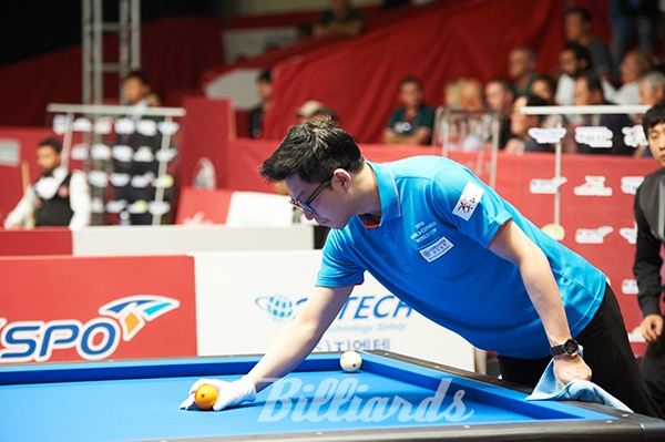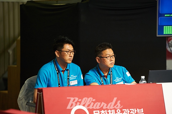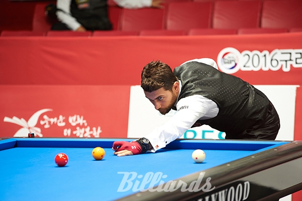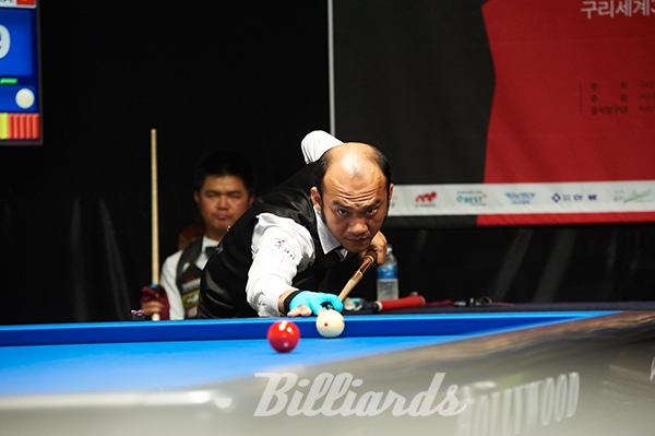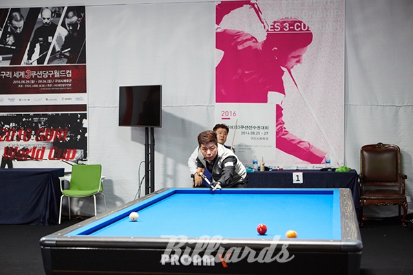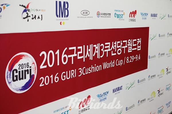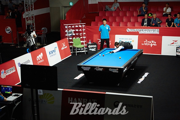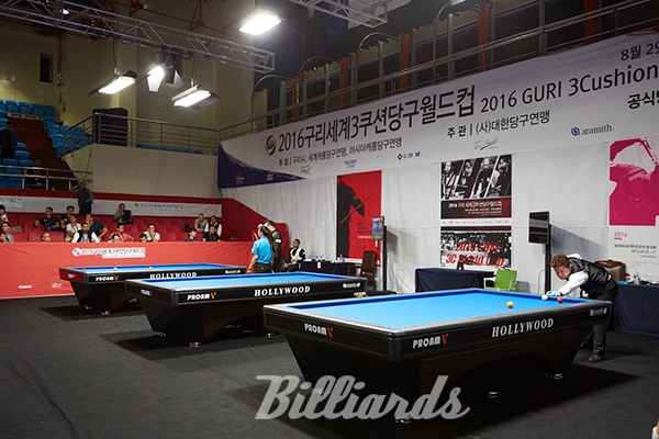 구리세계3쿠션월드컵 본선행 티켓을 놓고 벌이는 마지막 대결이 오늘 9월 1일 구리시체육관에서 펼쳐지고 있다. 구리세계3쿠션월드컵이 열리고 있는 구리시 체육관 이상대와 대결 중인 조명우 베트남의 마쑤언꿍 홍진표 칸 카팍(터키) 비롤 야마즈(터키) 응오딘나이(베트남) 김현석 조치연과 최종 예선전을 치르고 있는 황혐범