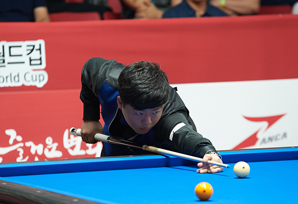 3쿠션 월드컵 역대 최연소 본선 진출 기록을 세운 조명우(18, 매탄고)가 '2016 구리 세계3쿠션당구월드컵' 8강전에서도 돌풍을 이어갔다.