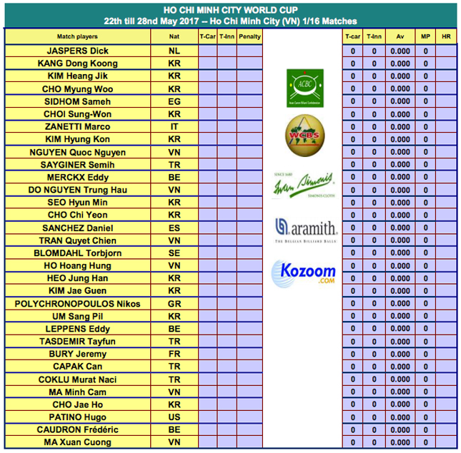 지난 5월 22일부터 25일까지 진행된 ‘호찌민 3쿠션 월드컵’ 예선전 결과 시드자 포함 한국 선수 11명이 본선 32강에 진출했다.