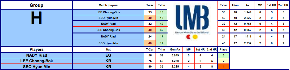 D조에서 응웬두이쓰룽, 도응웬쓰룽하우 등 베트남 선수 두 명과 대결한 레펜스는 각각 22이닝 40:37, 11이닝 40:17로 승리하며 2승을 올렸다.