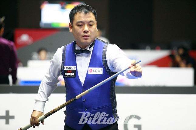 [빌리어즈=서울/김민영 기자] 조재호는 '2017 LG U+컵 3쿠션 마스터스' 예선 마지막 날인 7일 오후 2시에 벌어진 강동궁과의 운명을 건 한판 승부에서 33:40(15이닝)으로 아깝게 져 본선에 오르지 못했다.