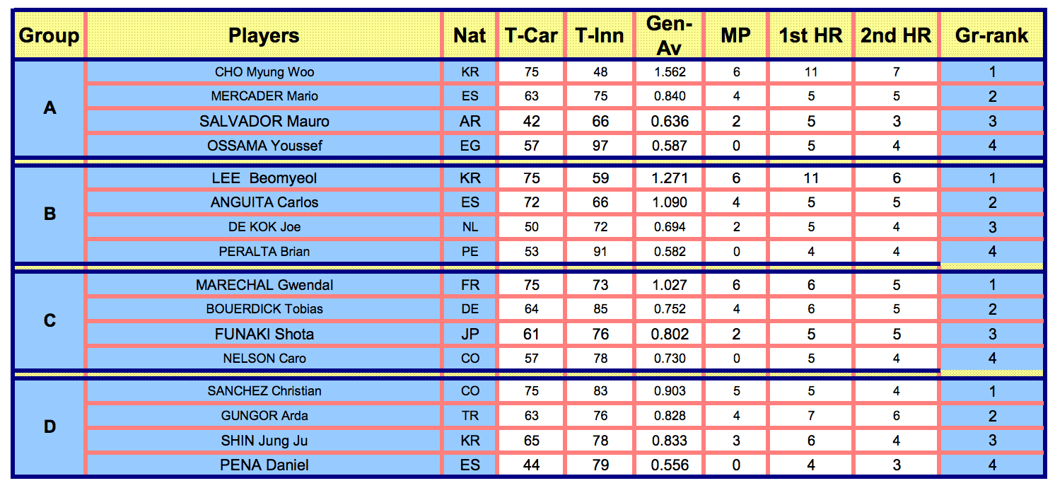 C조에서는 그웬달 마르샬(20∙프랑스)이 3승으로 독주했다. 마르샬은 본선에 오른 8명 중 합산 애버리지 1.027로 3위에 올랐다.