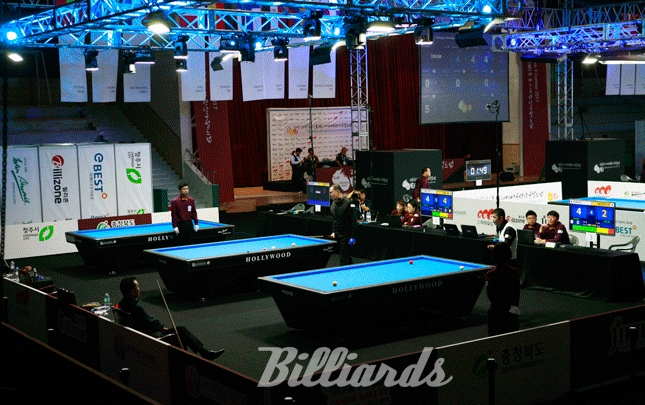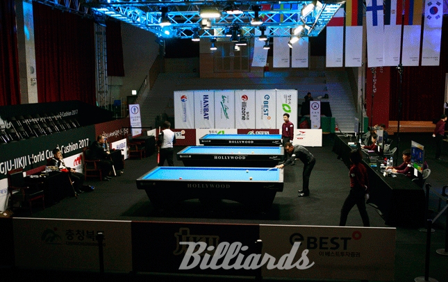 [빌리어즈=청주/김민영 기자] '2017 청주직지 3쿠션 월드컵' 공식 당구대는 국산 당구대 중 가장 전통이 깊은 (주)허리우드의 '프로암V'가 사용된다. '프로암V'는 2015∙2016년 호찌민 3쿠션 월드컵과 2016년 구리 3쿠션 월드컵에서 공식 당구대로 사용된 바 있다. 2015년 호찌민 3쿠션 월드컵에서는 본선 토너먼트 통산 애버리지 1.776을 기록하기도 했다.