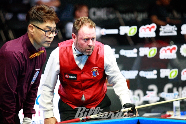 [빌리어즈=청주/김민영 기자] '2017 청주직지 3쿠션 월드컵' 예선 1라운드 PPPQ에 출전한 스페인의 펠릭스 까스띨야가 2패로 탈락했다. 첫 경기에서 응웬안타이(베트남)에게 27:30으로 패한 까스띨야는 두 번째 경기에서도 한국의 장대현(경기당구연맹)에게 20이닝 만에 12:30으로 패해 2패를 기록했다.