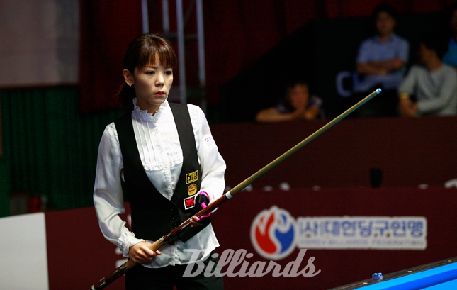 [빌리어즈=청주/김민영 기자] '2017 청주직지 3쿠션 월드컵' 둘째 날 예선 2라운드 PPQ에 일본의 여자 3쿠션 선수 고바야시 료코가 출전했다. 고바야시는 한국의 김현석, 강민구 등의 강자들과 대결한다. 첫 경기에서는 김현석에게 13:30(29이닝)으로 패했다.