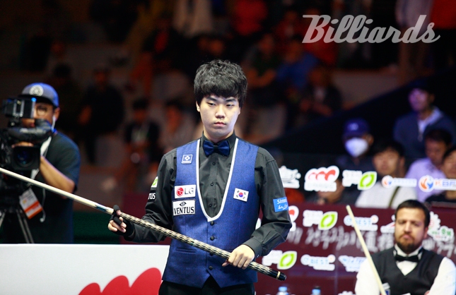 [빌리어즈=청주/김민영 기자] '2017 청주직지 3쿠션 월드컵'에서 '한국 당구의 대들보' 김행직(25∙전남당구연맹)이 결승에 진출했다. 김행직은 지난 7월 열린 포르토 3쿠션 월드컵에서 우승한 이후 이번 청주 월드컵에서도 결승에 진출하며 한국 선수로는 최초로 월드컵 연속 우승에 도전하게 되었다.