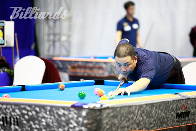 사진은 신중하게 1볼 공략하는 김희철(부산당구연맹).