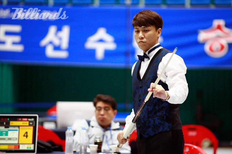 [빌리어즈=괴산/김민영 기자] 3쿠션 세계 챔피언 '당구 황태자' 최성원(부산)이 전국체전 1쿠션 금메달에 도전한다. 최성원은 준결승전에서 지난해 전국체전 우승자인 허정한을 19이닝 만에 100:72로 꺾고 결승에 진출했다.