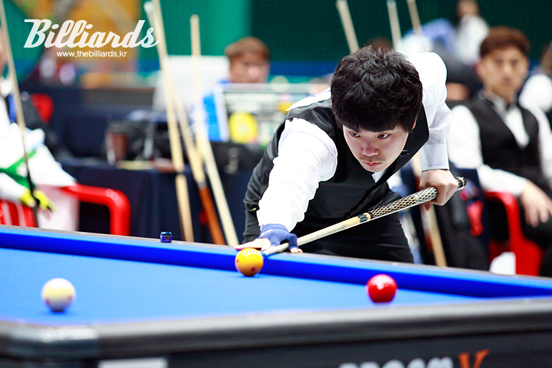 [빌리어즈=괴산/김민영 기자] 2017 시즌 3쿠션 월드컵에서 2회 연속 우승 차지한 김행직(전북)이 전라북도 대표로 '2017 전국체육대회'에 출전했다. 김행직은 캐롬 3쿠션 개인전 16강에서 김봉철(제주)을 22이닝 만에 40:35로 꺾고 8강에 올라갔다. 22일 오전 9시에 열리는 8강전에서 김행직은 국내 랭킹 1위 조재호(서울시청)와 대결한다.