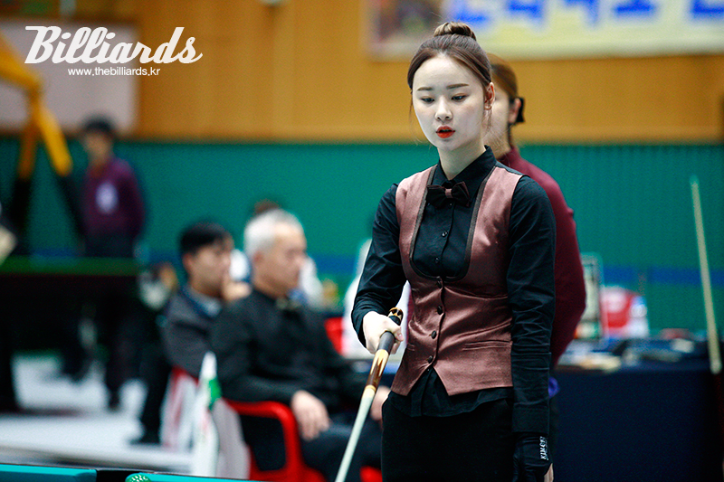 [빌리어즈=괴산/김민영 기자] '2017 전국체육대회' 당구 종목 포켓 9볼 혼성복식전에 출전한 김보건(경북)이 샷을 하기 위해 각도를 계산하고 있다. 16강전 첫 경기에서 경북(윤동진∙김보건)은 지난해 전국체전에서 금메달을 딴 부산광역시를 8-6으로 꺾고 8강에 진출했다.