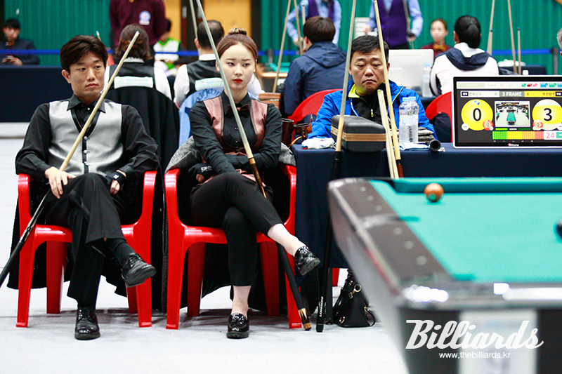 [빌리어즈=괴산/김민영 기자] 21일 오후 4시 30분에 시작한 '2017 전국체육대회' 당구 종목 포켓 9볼 혼성복식전 16강에서 '당구 요정' 김보건(국내 랭킹 5위)과 윤동진이 대표로 출전한 경상북도가 지난해 전국체전 우승 부산광역시(하민욱∙정보라)를 8-6으로 꺾고 8강에 진출했다.