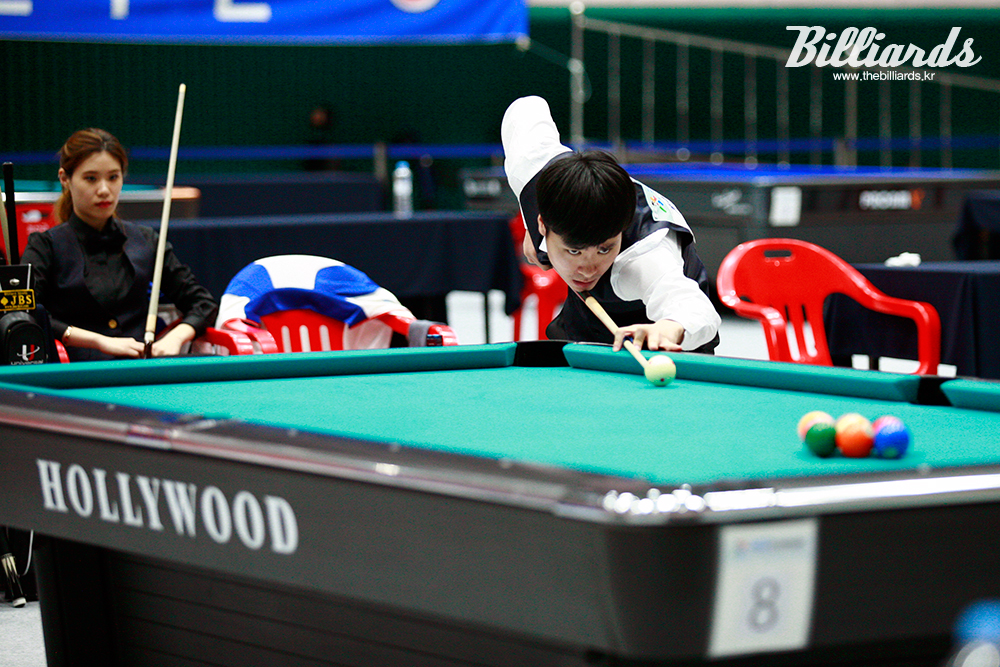 [빌리어즈=괴산/김민영 기자] '2017 전국체육대회' 당구 종목 포켓 9볼 혼성복식전에서 은메달을 획득한 고태영(24∙세종)이 22일 오후 3시에 열린 결승전에서 브레이크 샷을 하고 있다. 고태영은 얼마 전 열린 '2017 구리 세계포켓9볼챔피언십'과 이번 전국체전에서 활약하며 한국 남자 포켓볼 새로운 강자로 급부상했다.