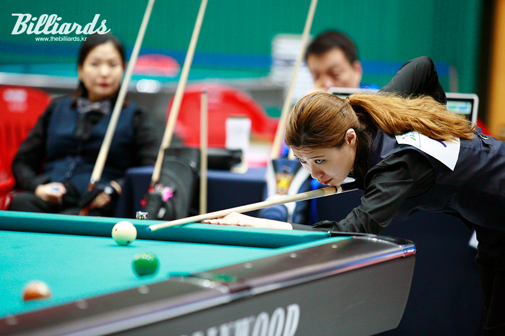 [빌리어즈=괴산/김민영 기자] '2017 전국체육대회'에 세종특별자치시 당구 대표로 출전한 김정현(국내 랭킹 14위)이 신중하게 샷을 하고 있다. 김정현은 고태영(국내 8위)과 찰떡 호흡을 맞춰 포켓 9볼 혼성복식전에서 은메달을 차지했다.