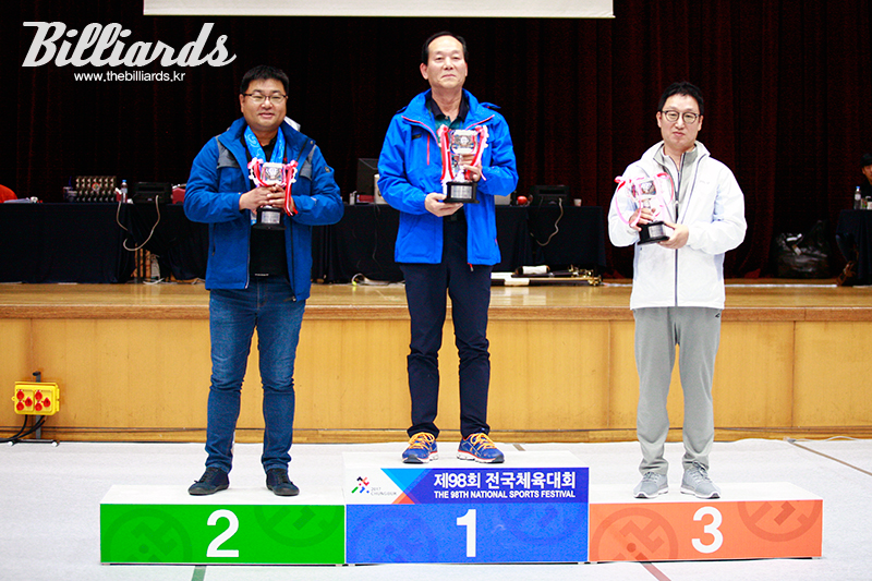 [빌리어즈=괴산/김민영 기자] 22일 오후 5시 '2017 제98회 전국체육대회' 당구 종목 시상식이 열렸다. 사진은 종합순위 시상(우승 광주, 준우승 전남, 3위 서울).