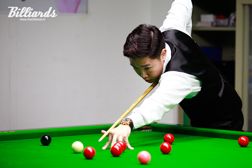 [빌리어즈=수원/김민영 기자] 사단법인 대한당구연맹(회장 남삼현)에서 주최하는 2017 스누커&잉글리시빌리어드 당구 그랑프리 3차 대회가 24일 경기도 수원에 있는 경기도당구연맹 스누커훈련장에서 열렸다. 사진은 지난 2차 그랑프리 우승자 이대규가 샷을 하는 모습.