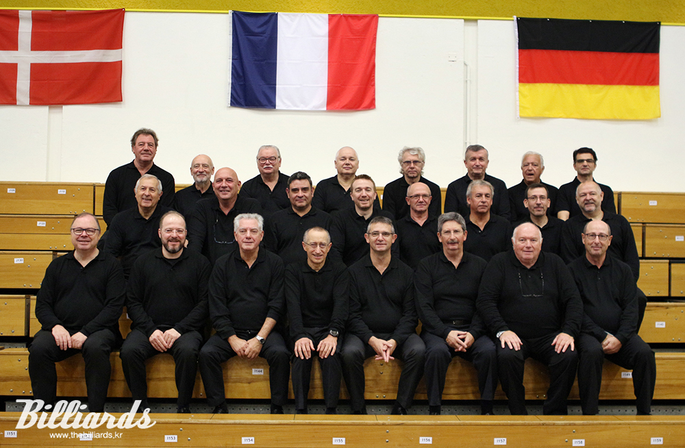 [빌리어즈=라볼/장한얼 기자] '2017 라볼 3쿠션 당구월드컵' 개회식이 한국시간으로 27일 오후 6시에 진행되었다. 사진은 개회식에 참석한 심판들.
