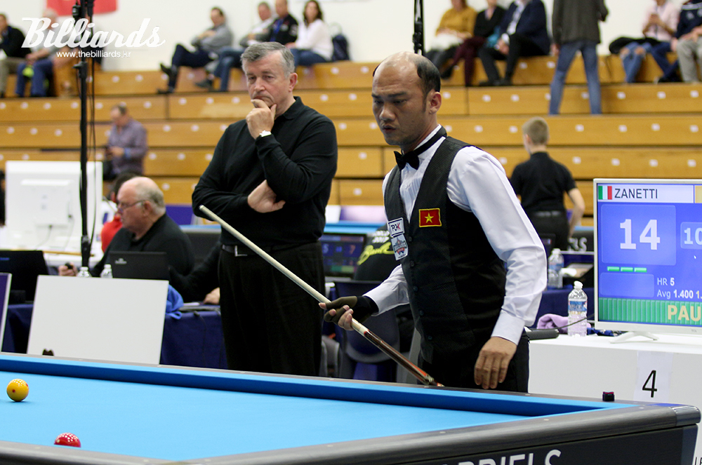 한편, 청주 당구월드컵에서 8강에 올랐던 베트남의 마쑤언끙(세계 29위)은 세계 랭킹 4위 마르코 자네티(이탈리아)를 21이닝 만에 40:37로 꺾었다.