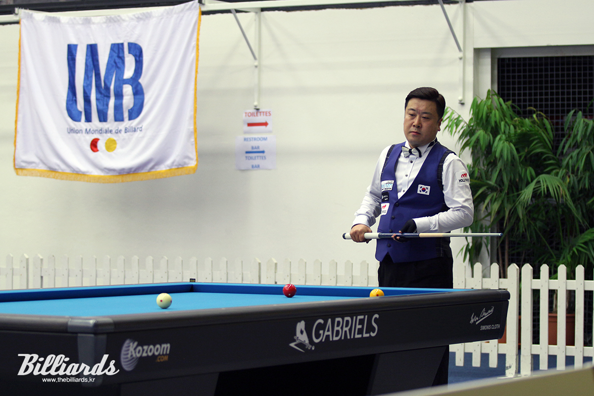 [빌리어즈=라볼/장한얼 기자] '2017 라볼 3쿠션 당구월드컵' 32강 본선 토너먼트에서 한국의 조치연(서울)이 베트남의 강자 응웬꾸억응웬(세계 랭킹 12위)을 22이닝 만에 40:22로 꺾고 16강에 진출했다.