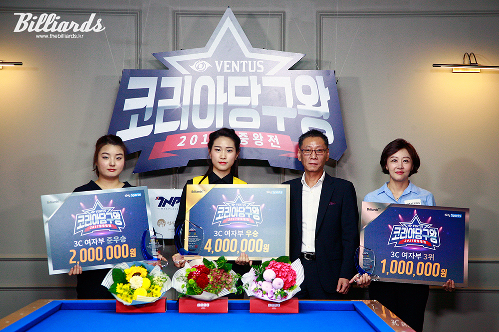 [빌리어즈=서울/김민영 기자] 아마추어 당구대회 사상 최고 상금이 걸린 '2017 벤투스컵 코리아 당구왕 왕중왕전'이 지난 26일 3쿠션 남자부 왕중왕전을 시작으로 화려하게 막을 올렸다. 3쿠션 남자부에는 우승상금 1000만원이 걸리고 경기가 빌리어즈TV를 통해 전국에 중계되면서 큰 화제가 되었다. 사진은 27일 끝난 3쿠션 여자부 왕중왕전 입상자들.