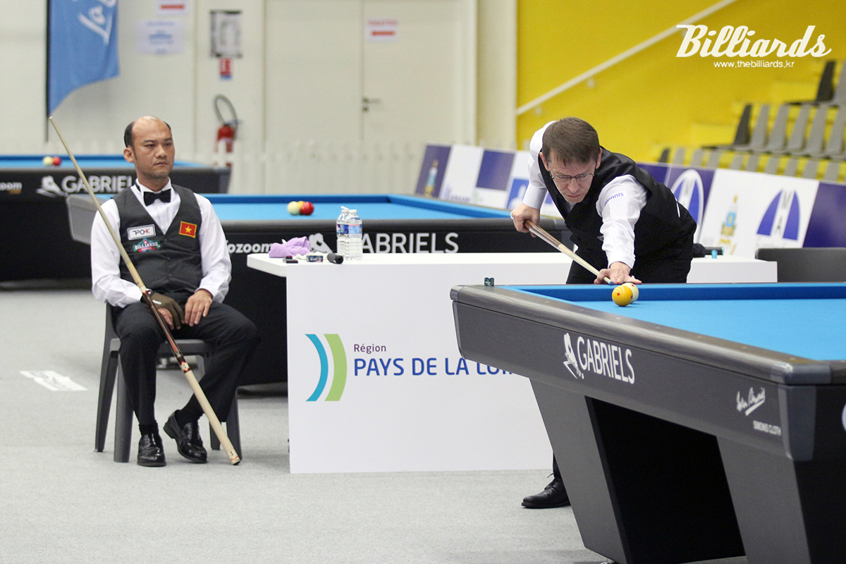 [빌리어즈=라볼/장한얼 기자] 베트남의 마쑤언끙(세계 랭킹 29위)이 6년 만에 3쿠션 당구월드컵 준결승 경기에 출전했다. 마쑤언끙은 이번 대회 32강전에서 세계 랭킹 4위 마르코 자네티(이탈리아)에게 40:37(21이닝)로 승리했고, 16강과 8강전에서는 한국의 최성원(부산체육회), 강동궁(동양기계)을 꺾고 준결승전에 진출했다.