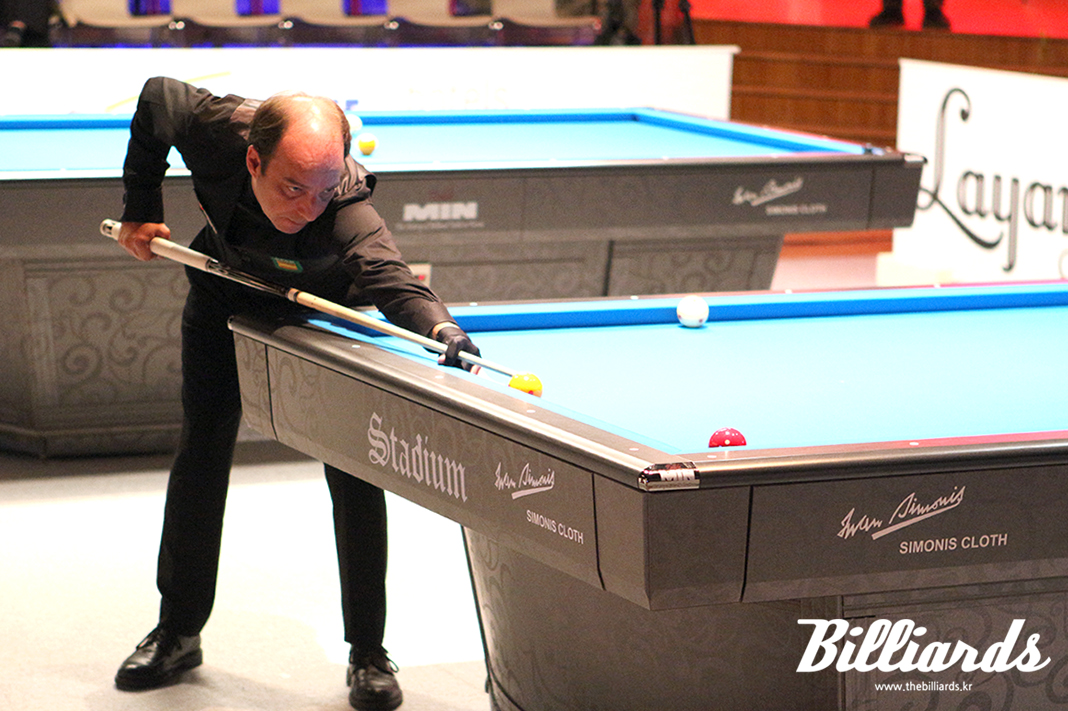 [빌리어즈=로잔/김민영 기자] 스페인의 다니엘 산체스가 '2017 로잔 빌리어드 마스터스' 첫 경기에 출격했다. 산체스는 17일 오후 8시 15분(한국시간)에 시작된 이번 대회 첫 경기에서 미셸 블라즈(스위스)에게 28이닝 만에 40:17로 승리했다.