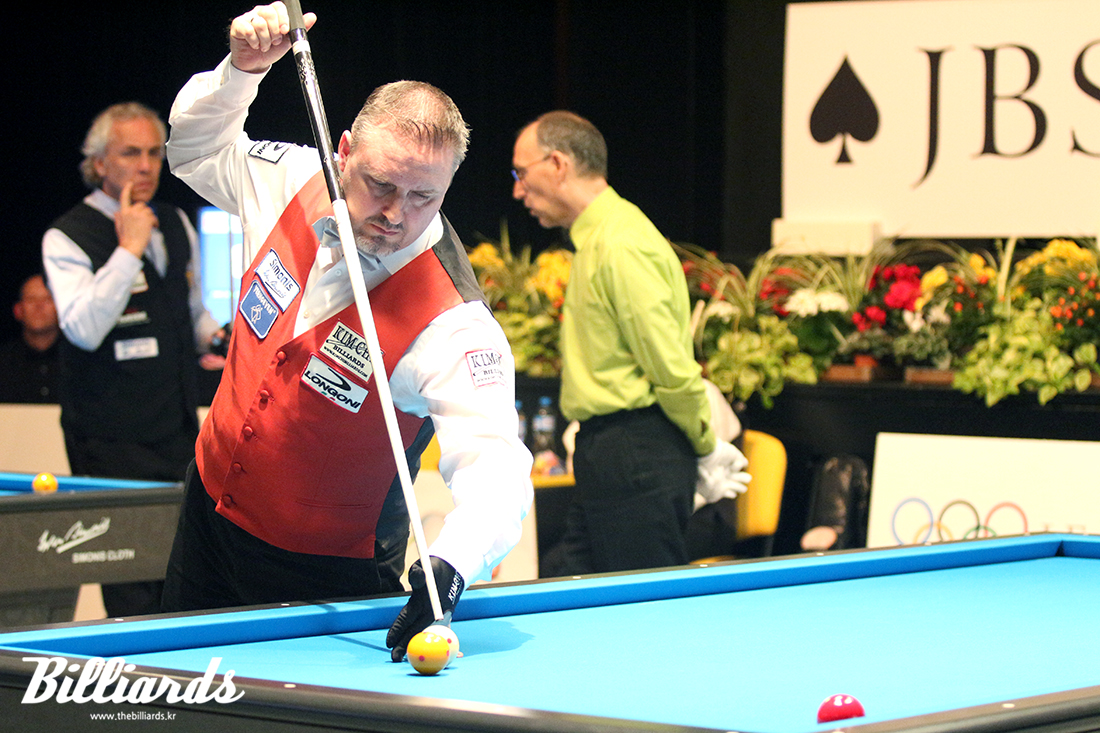 [빌리어즈=로잔/김민영 기자] '2017년 3쿠션 세계 챔피언' 프레데릭 쿠드롱(벨기에∙세계 랭킹 1위)이 스위스 로잔에서 열리고 있는 '2017 로잔 빌리어드 마스터스' 예선 리그전을 2승으로 통과했다. 쿠드롱은 대회 첫날인 17일 경기에서 강동궁(동양기계)을 40:21로 꺾었고, 18일 두 번째 경기에서 티엔두이 마(스위스)에게 40:18로 승리했다.