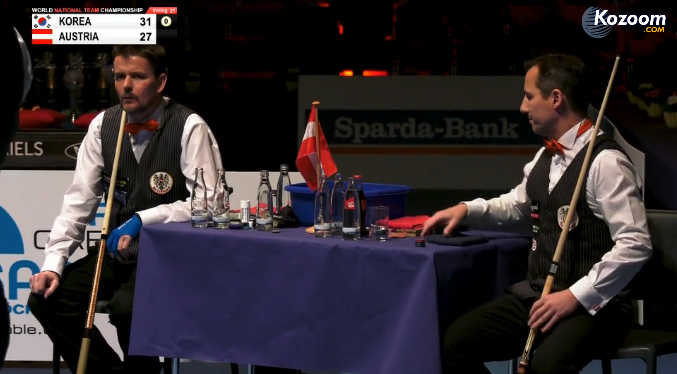 다음 23이닝에서 한국은 강동궁의 역회전과 최성원의 제각돌리기로 남은 두 점을 마무리했고, 오스트리아가 후구에서 1점을 올리는 데 그치면서 40:30으로 승리했다.
