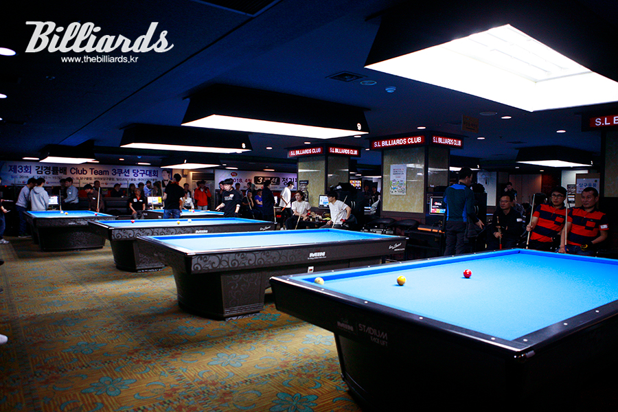 [빌리어즈=서울/김민영 기자] '2018 제3회 김경률 추모배 클럽팀3쿠션당구대회'가 14일 오전 9시에 수도권 4개 구장에서 일제히 시작되었다. 사진은 예선전이 진행되고 있는 서울 강남 논현동에 위치한 SL당구클럽.