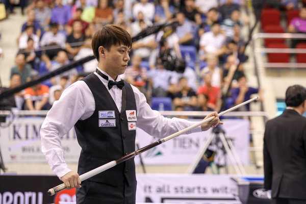 쩐득민이 남은 3점을 끝내기 전에 최성원은 15점을 먼저 쳐야 하는 어려운 상황에 놓였다.