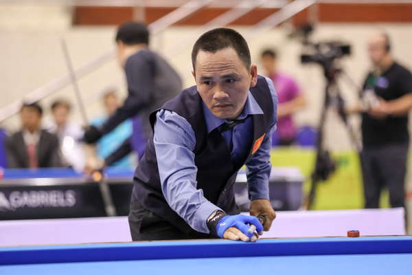 최성원은 25일 오후 2시 열린 '2018 호찌민 3쿠션 당구월드컵' 32강전에서 쩐득민(베트남)에게 40:39로 승리하며 16강에 진출했다.