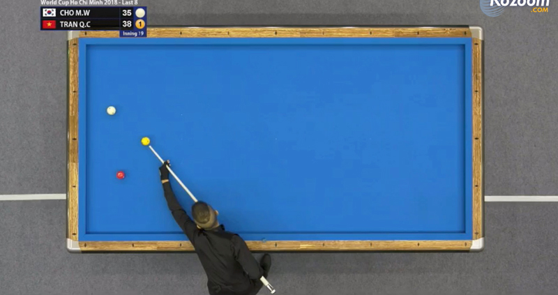조명우는 쩐뀌엣찌엔이 제1적구와 수구의 키스를 빼면서 두께 조절에 실패하는 바람에 얻은 19이닝 마지막 기회에서 제각돌리기대회전을 성공하며 35점째 득점을 올렸다.