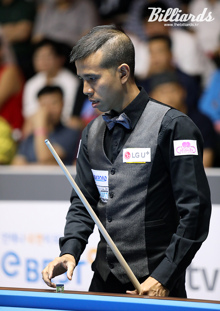 전반전을 단 5이닝 만에 22:5로 마친 쩐뀌엣찌엔은 후반전 초반에도 득점을 이어가며 강동궁을 견제했다.