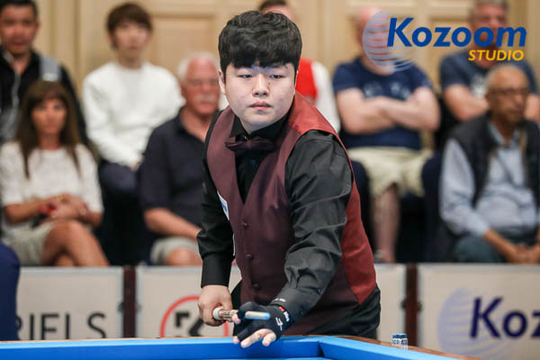 '3쿠션 샛별' 조명우는 H조에서 네덜란드의 글렌 호프만을 22이닝 만에 40:35로 따돌린 뒤 찬 차팍과의 승자승 대결에서 연속 22득점, 평균 4.000득점(10이닝) 등 이번 대회 최고기록을 세우며 40:19로 승리했다.