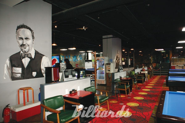 노출 콘크리트로 된 벽면에는 영화의 장면들과 유명 당구선수들의 벽화가 그려져 있으며, J빌리어드를 방문한 선수들이 자신의 그림 위에 손수 사인까지 해 인테리어 효과를 극대화하고 있다.